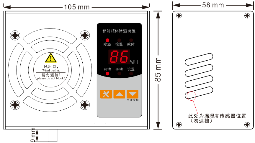 10、型號帶“T”的具有加熱功能,當檢測到箱體環(huán)境溫度低時,除濕裝置內部的風機和外部加熱器啟動工作。